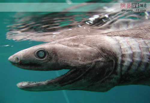 一种罕见的鲨鱼出现在日本,这种被叫做皱鳃鲨的鲨鱼,从史前时期开始到现在,没有发生太大的变化,被称为活化石。 ![]() ![]() 据路透社23日消息,一种罕见的鲨鱼在本周出现在日本一个海洋公园内,而这种奇特模样的鲨鱼往往生活在600到 在日本东京附近的粟岛海洋公园内,附近的一位渔民在周日发现了一条形状与鳗鱼相似的奇特物种,满嘴长满锋利的牙齿。 后来,海洋公园的工作人员捕捉到了这个长 海洋公园的工作人员称:“能够拍摄到该物种的活动时的照片还十分罕见,他们一般都生活在600到 可惜的是这条皱鳃鲨在被捕捉后的几小时就死亡了。 皱鳃鲨资料 软骨鱼纲的一目。现存只1科1属1种。因鳃间隔延长而褶皱,且互相覆盖,故称为皱鳃鲨。体长1.5米左右,最长雌鱼1.96米、雄鱼1.65米。体鳗形。鳃孔 6对。口近端位。上下颌牙同形。每牙具3个长齿尖,属枝牙型,有基板似化石异棘类的牙齿。鼻孔在侧腹面。眼无瞬膜,具喷水孔。侧线沟状。脊索未收缩;前10个脊椎有清楚的环状钙化物;在臀鳍以后的脊椎,亦有环状钙化的迹象。臀鳍长;尾鳍中的脊椎稍向上翘,形成不显著的歪型尾。数量很少,分布于太平洋和大西洋。一般生活在450~760米的深海中。卵胎生。雄鱼有极发达的鳍脚。春天受精。卵囊一端突起。发育在母体内进行。孵化期1年以上,翌年夏季,幼鱼才生出。